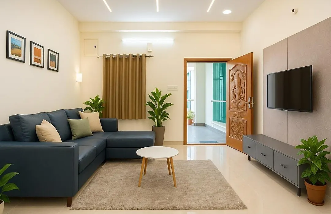 The 130 m² Vijapuri Nilayam- 2Bhk, Gachibowli Apartment Hyderabad is a great place to stay in the Gachibowli district of Hyderabad, approximately 6 km from the Shilparamam Arts and Crafts Village.